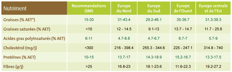 Il ressort de cette enquête que l’alimentation des Européens est loin de remplir les recommandations nutritionnelles émises par l’Organisation Mondiale de la Santé (OMS):